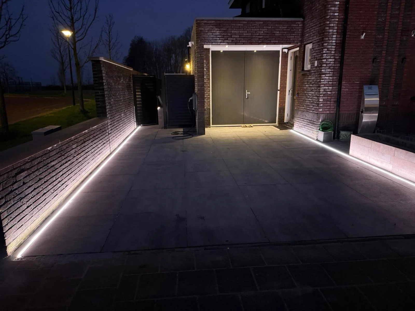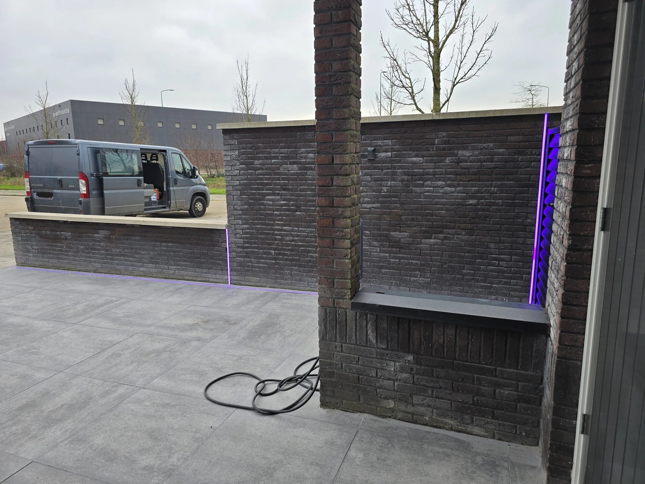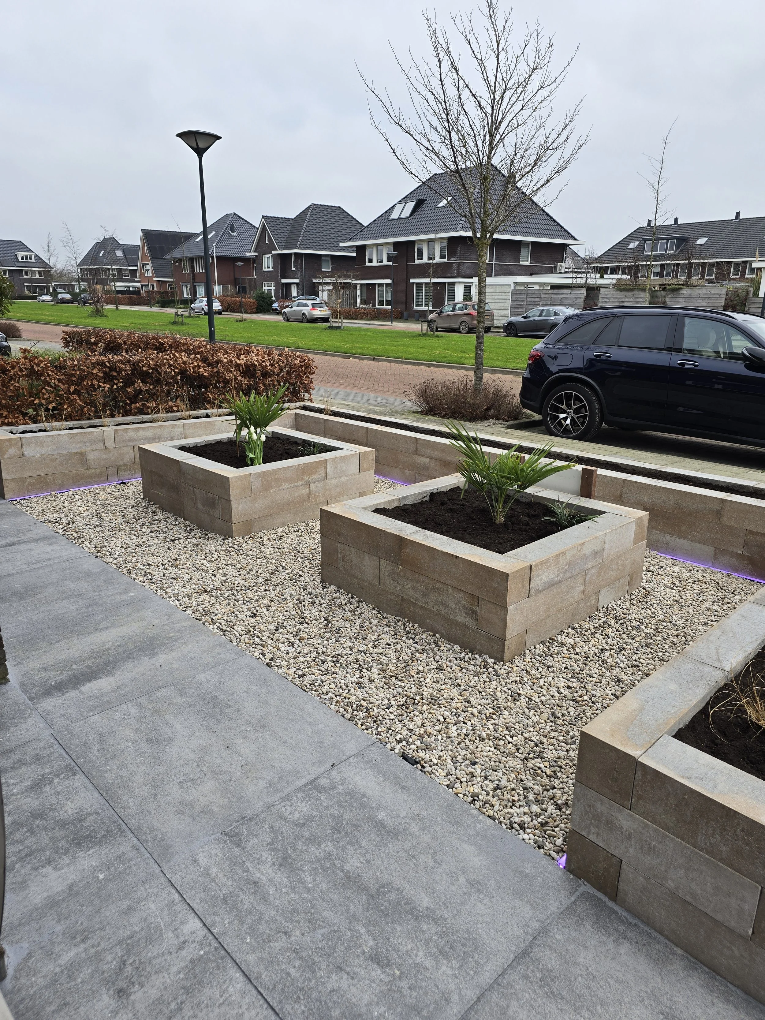 Bestrating en plantenbakken van stapelblokken met Geïntegreerde RGB LED strips.